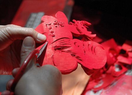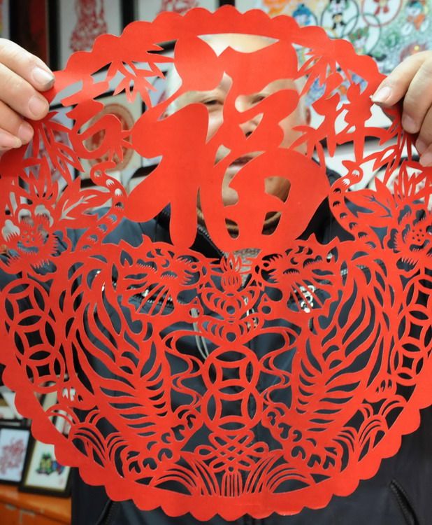 剪纸:玲珑剔透的窗花、门笺,以福、鱼、生肖等吉祥图案装点万家。